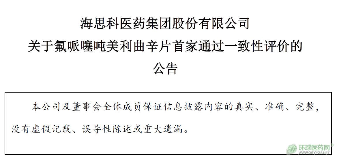 2月25日,海思科醫(yī)藥集團股份有限公司發(fā)布《關(guān)于氟哌噻噸美利曲辛片首家通過一致性評價的公告》。