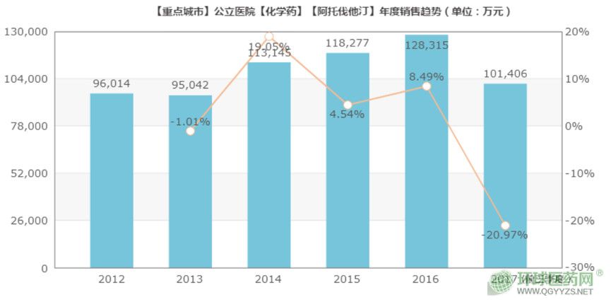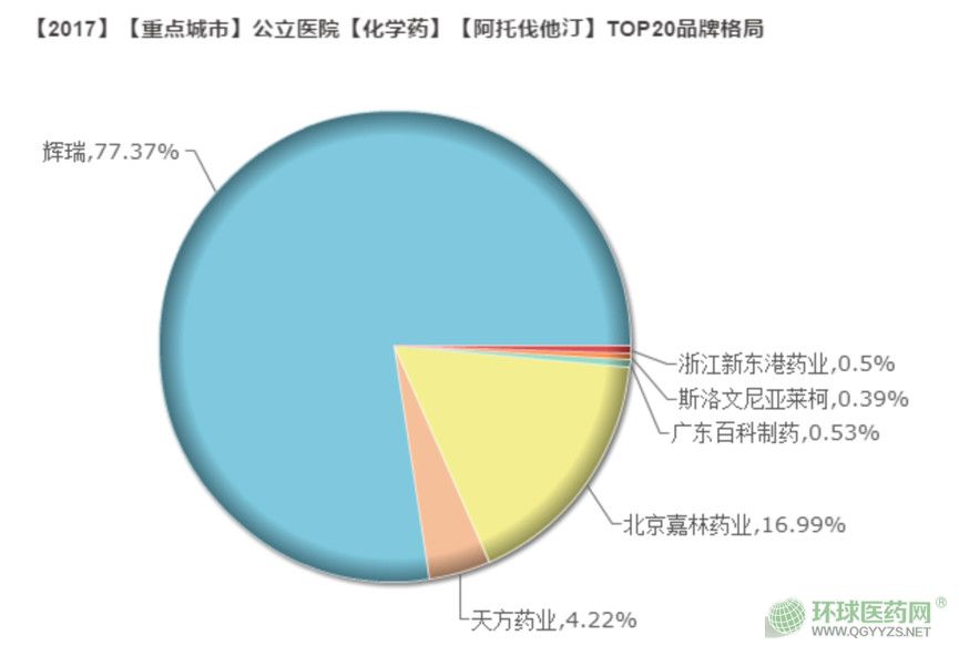 據(jù)米內(nèi)網(wǎng)數(shù)據(jù),在其城市公立醫(yī)院化學藥用藥數(shù)據(jù)中,阿托伐他汀鈣片以1.02%的份額排名第五位。