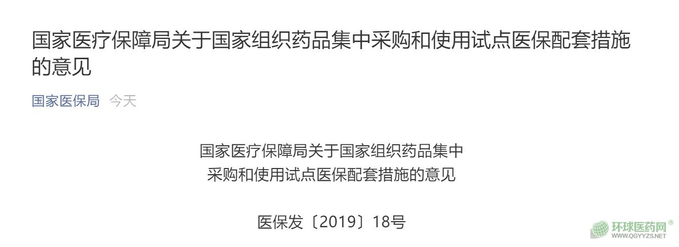 3月5日,國家醫(yī)保局官方微信發(fā)布了《國家醫(yī)療保障局關(guān)于國家組織藥品集中采購和使用試點(diǎn)醫(yī)保配套措施的意見》(以下簡稱《意見》)。