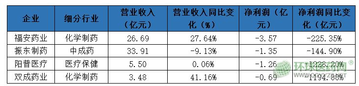 統(tǒng)計(jì)的61家藥企中有4家藥企虧損,其中有虧損超過億元,凈利同比均下降超過100%,其中有陽(yáng)普醫(yī)療和雙成藥業(yè)同比下降超過1000%。
