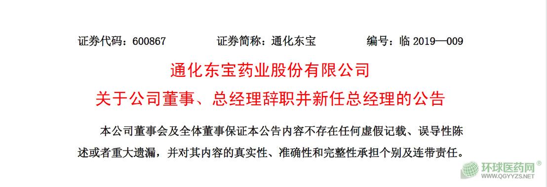根據(jù)公告,通化東寶藥業(yè)股份有限公司董事會(huì)于2019年3月3日收到公司董事、總經(jīng)理李聰先生的書(shū)面辭職報(bào)告,因個(gè)人原因,申請(qǐng)辭去公司董事、總經(jīng)理職務(wù),同時(shí)辭去公司第九屆董事會(huì)戰(zhàn)略委員會(huì)、提名委員會(huì)的相關(guān)職務(wù)。