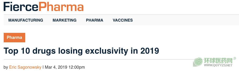3月4日,國外醫(yī)藥網(wǎng)站FiercePharma發(fā)布了一份2019年可能面臨專利挑戰(zhàn)風險的十大藥物清單。