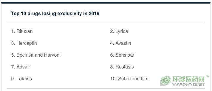 以下是2019年可能面臨專利挑戰(zhàn)風險的十大藥物的概況: