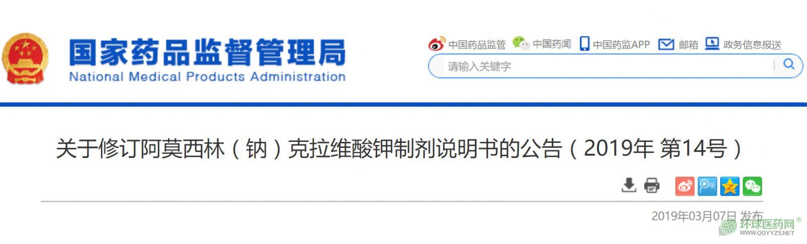 據(jù)《關(guān)于修訂阿莫西林(鈉)克拉維酸鉀制劑說明書的公告》(2019年 第14號(hào)):