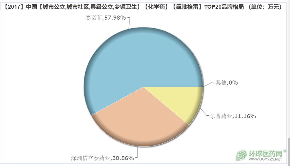 據(jù)米內(nèi)網(wǎng)數(shù)據(jù),目前,我國市場上有3家企業(yè)的硫酸氫氯吡格雷片劑銷售:賽諾菲的波立維、深圳信立泰的泰嘉,樂普藥業(yè)的帥泰和帥信,分別為57.98%、30.86%和11.16%。