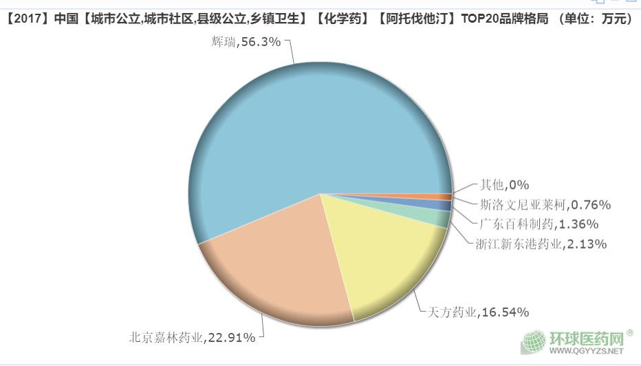 資料顯示,阿托伐他汀市場規(guī)模近160億元。據(jù)米內(nèi)網(wǎng)數(shù)據(jù),2017年輝瑞市場份額56.3%,嘉林 22.91%,天方藥業(yè) 16.54%。