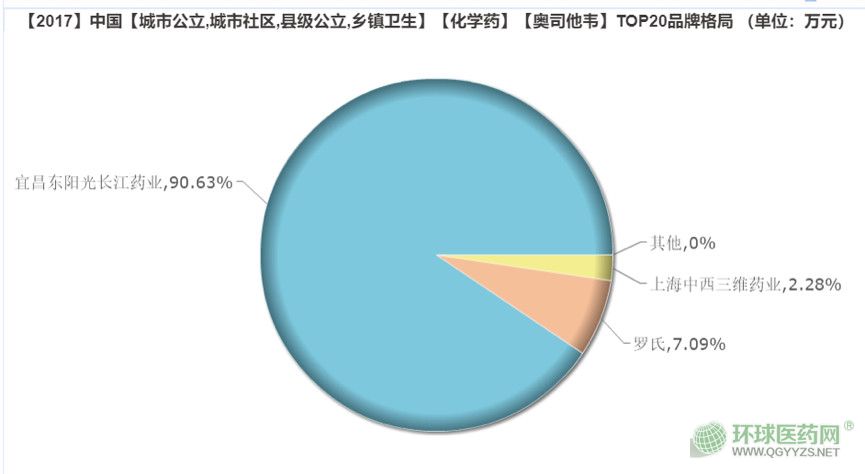 根據(jù)米內(nèi)網(wǎng)數(shù)據(jù),奧司他韋的市場格局如下:東陽光占據(jù)絕對份額,90.63%,其次是羅氏、上海中西三維,分別為7.09%和2.28%。