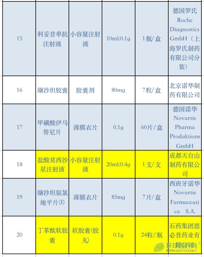 福建省藥品聯(lián)合限價陽光采購藥品銷售金額排名前20