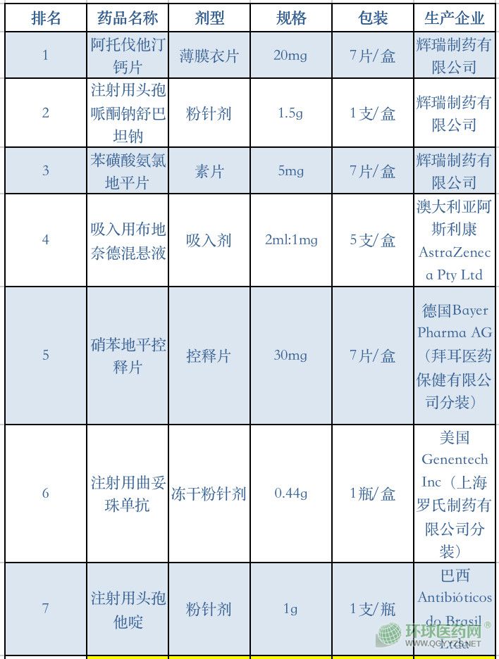 福建公布最新藥品銷售前20排名,輝瑞的阿托伐他汀鈣片保持第一,多國內(nèi)藥企掉榜