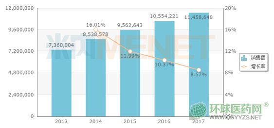 作為嚴(yán)重威脅人類的常見(jiàn)病心腦血管疾病,該領(lǐng)域相關(guān)用藥長(zhǎng)期位居福建藥品銷售TOP20,可見(jiàn)心腦血管疾病患者的用藥需求之大。據(jù)米內(nèi)網(wǎng)數(shù)據(jù),2017年中國(guó)公立醫(yī)療機(jī)構(gòu)終端心血管系統(tǒng)藥物的銷售額超過(guò)1145億元,同比增長(zhǎng)8.57%。