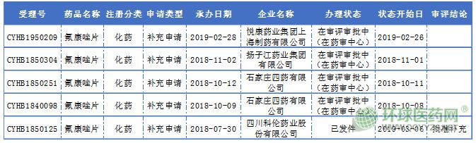 氟康唑片一致性評(píng)價(jià)申報(bào)情況: