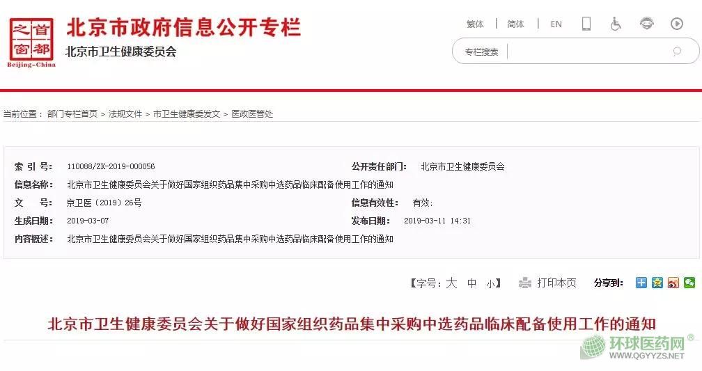 北京市衛(wèi)生健康委員會(huì)關(guān)于做好國(guó)家組織藥品集中采購(gòu)中選藥品臨床配備使用工作的通知