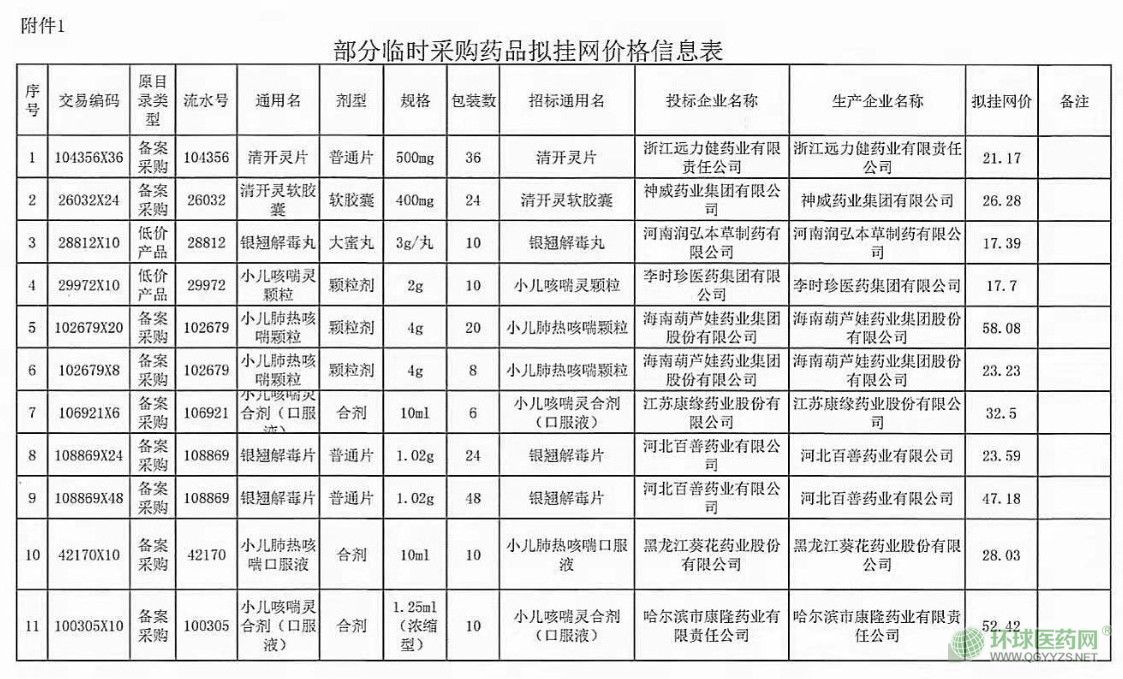 附:部分臨時(shí)采購(gòu)流感防治藥品擬掛網(wǎng)價(jià)格明細(xì)表