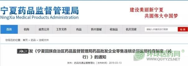 3月12、13日,寧夏回族自治區(qū)藥監(jiān)局分別印發(fā)了《2019年全區(qū)藥品生產(chǎn)、特殊管理藥品監(jiān)督檢查計劃》(以下簡稱《檢查計劃》),《寧夏回族自治區(qū)藥品監(jiān)督管理局藥品批發(fā)企業(yè)零售連鎖總部監(jiān)督檢查制度(試行)》(以下簡稱《檢查制度》)的通知。