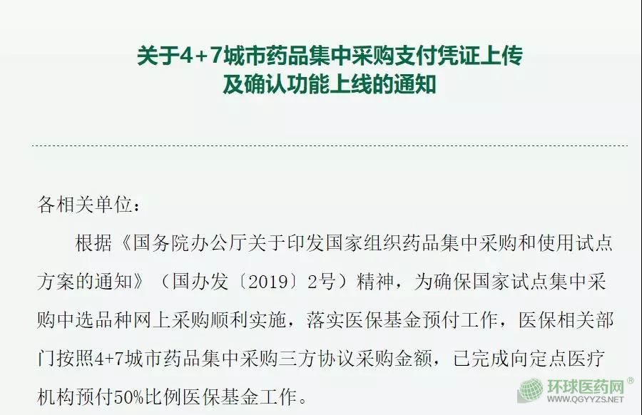 4+7如火如荼,醫(yī)保已經(jīng)預(yù)付50%,醫(yī)院趕緊給企業(yè)打款。