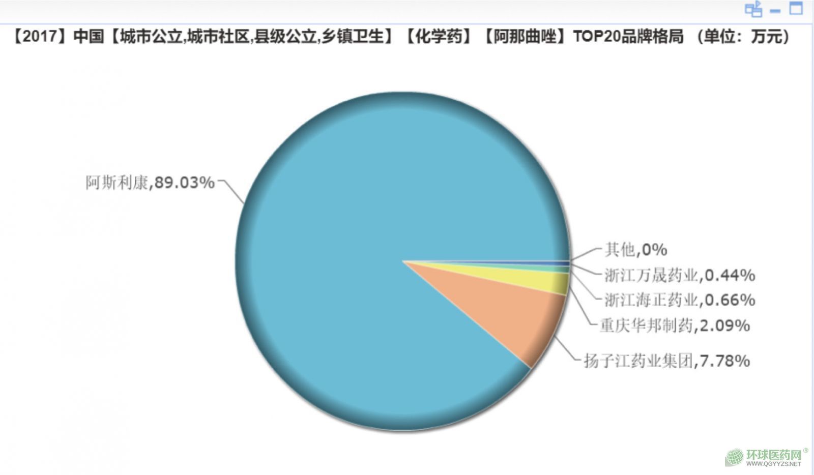 在市場競爭格局方面,根據(jù)米內(nèi)網(wǎng)數(shù)據(jù)庫,阿那曲唑有89.03%的市場由原研企業(yè)阿斯利康所占據(jù),其次是揚(yáng)子江(7.78%)、重慶華邦(2.09%)等。本次揚(yáng)子江首家通過該品種一致性評價(jià),在接下來的藥品集采中,將有望進(jìn)一步?jīng)_擊原研藥市場。