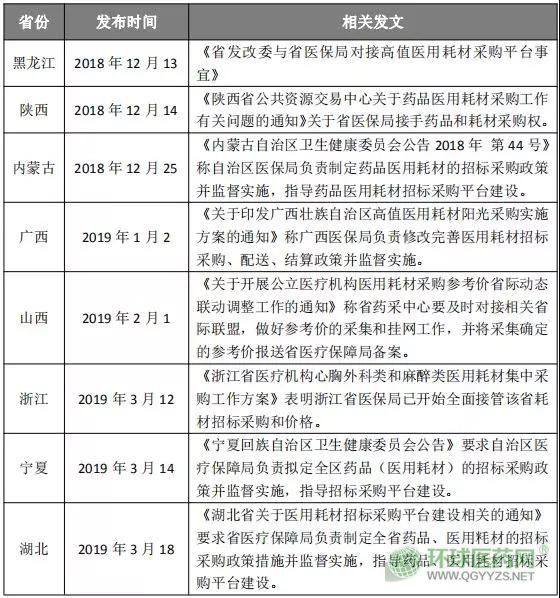 這意味著,湖北省成為繼寧夏之后全國(guó)范圍內(nèi)醫(yī)保局接管耗材招標(biāo)采購的第8個(gè)省份。為方便讀者有一個(gè)清晰直觀的認(rèn)識(shí),賽柏藍(lán)器械對(duì)8個(gè)省份及其相關(guān)文件做了梳理: