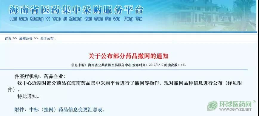 近日,海南省公共資源交易服務(wù)中心發(fā)布《關(guān)于公布部分藥品撤網(wǎng)的通知》(以下簡稱《通知》)。