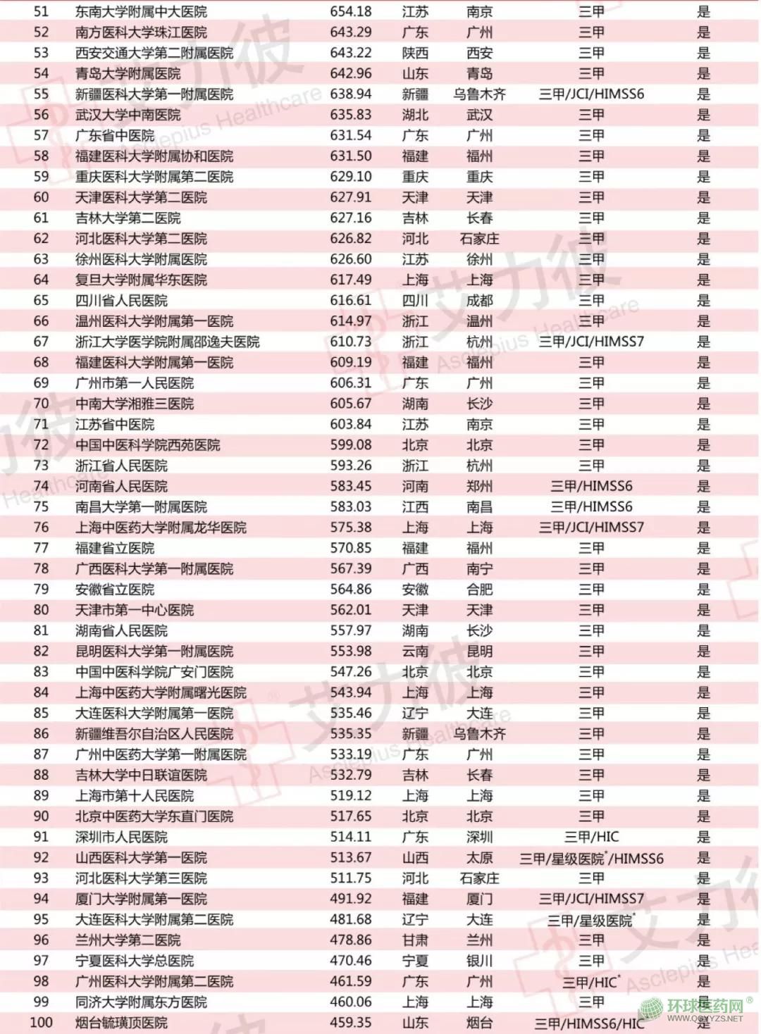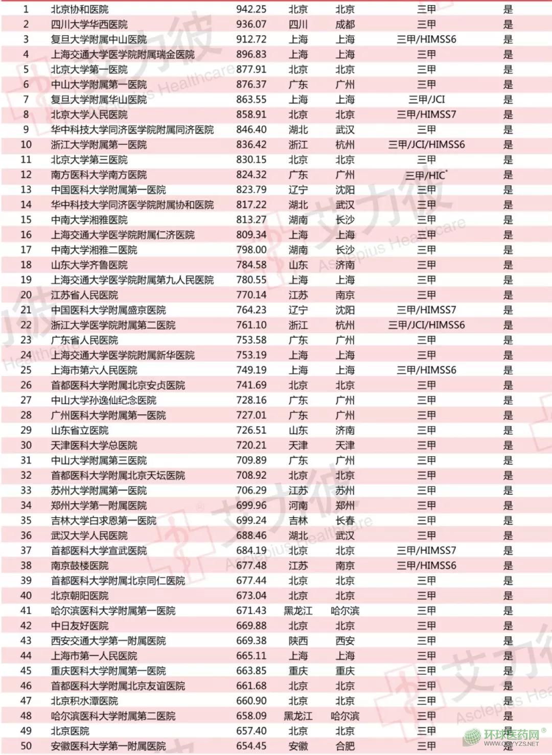 3月29日,艾力彼發(fā)布2018中國頂級醫(yī)院100強名單——