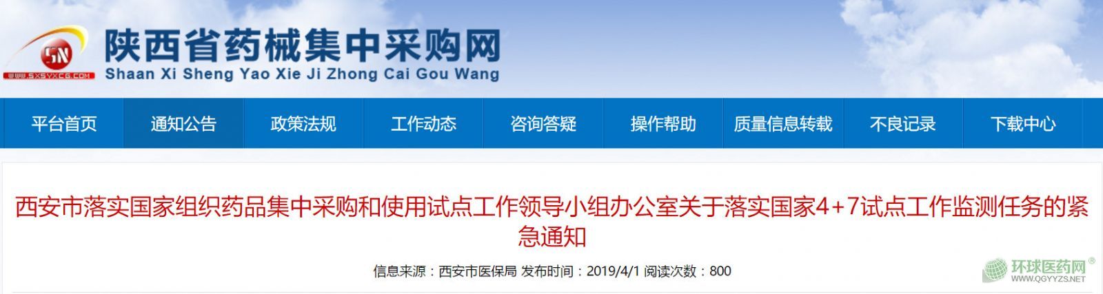4月1日,西安市醫(yī)保局發(fā)布《西安市落實(shí)國(guó)家組織藥品集中采購(gòu)和使用試點(diǎn)工作領(lǐng)導(dǎo)小組辦公室關(guān)于落實(shí)國(guó)家4+7試點(diǎn)工作監(jiān)測(cè)任務(wù)的緊急通知》(以下簡(jiǎn)稱《通知》)。