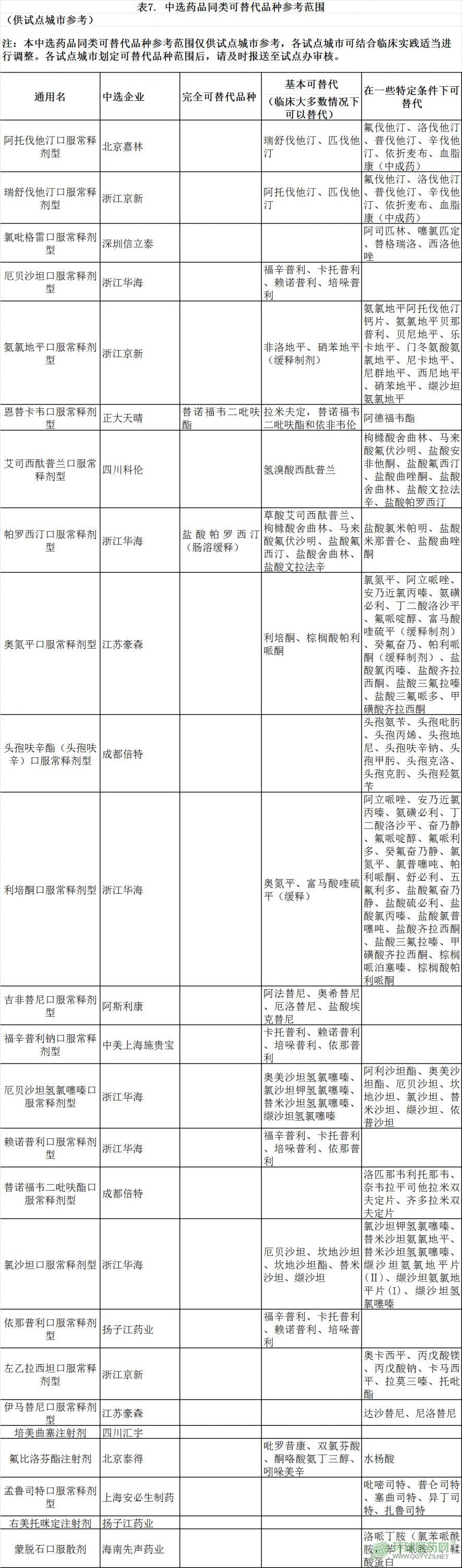 最后,西安市醫(yī)保局還提供了中選藥品同類可替代品種參考范圍,可見(jiàn),一旦中選藥品的供應(yīng)出現(xiàn)問(wèn)題,基本可替代,在一些特定條件下可替代的藥品或迎來(lái)機(jī)會(huì)。