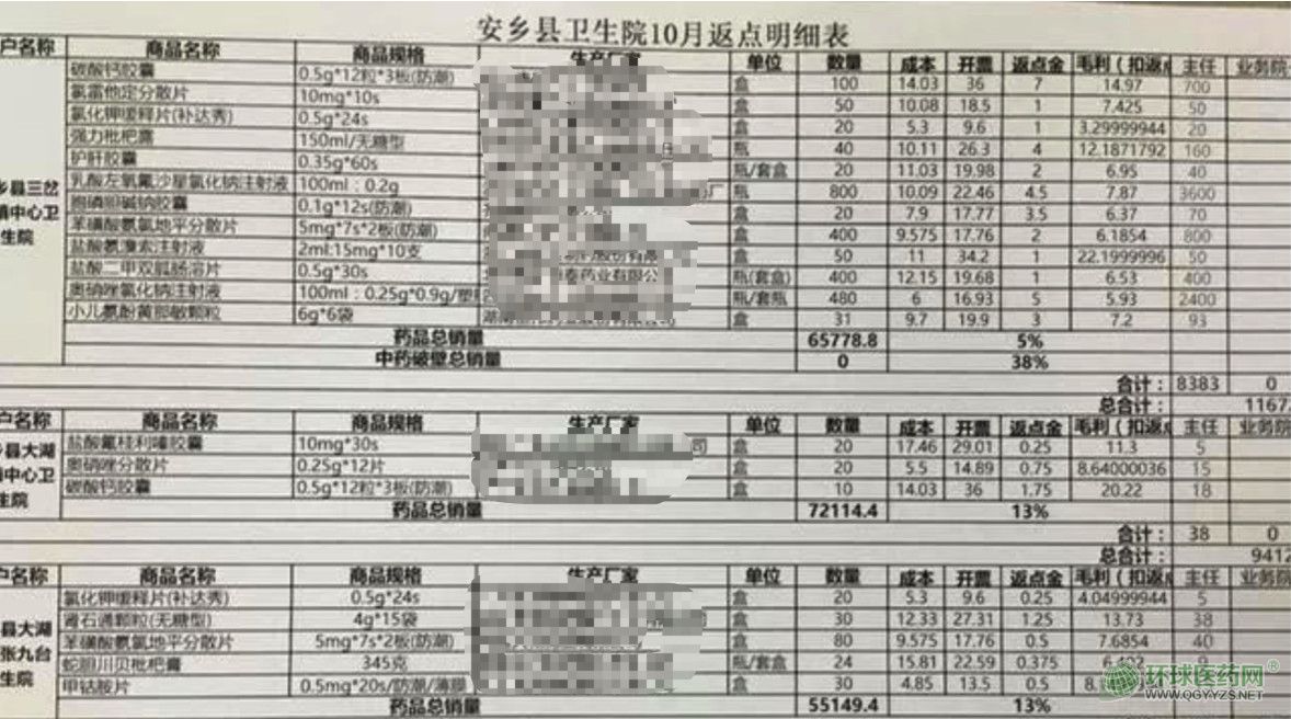 另外,在記者暗訪中,安鄉(xiāng)縣大湖口鎮(zhèn)張九臺衛(wèi)生院藥劑科主任說,為了安全性,他自己的返點都是由醫(yī)藥公司的總經(jīng)理親自過來發(fā)放。