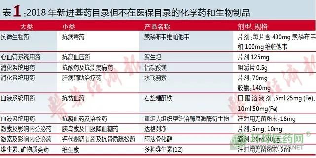 類別1 2018年新進基藥目錄但不在醫(yī)保目錄的產品