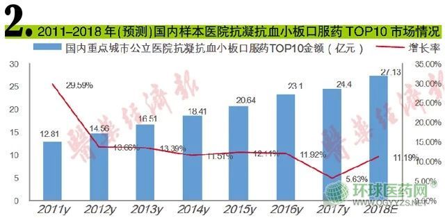 2017年全球抗血栓藥市場規(guī)模為235億美元,預計2018年將達到259億美元,同比增長10.21%。在已問世的抗血栓藥物中,抗血小板聚集藥物是重要角色。