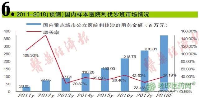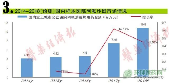 據(jù)米內(nèi)網(wǎng)數(shù)據(jù),2018年1-3季度國內(nèi)重點城市公立醫(yī)院利伐沙班用藥金額為2.82億元,預測全年將達3.76億元,同比上一年增長近40%,國內(nèi)醫(yī)院總體市場將超過12億元,是抗血栓形成藥物中僅次于氯吡格雷片居第二位的藥物。