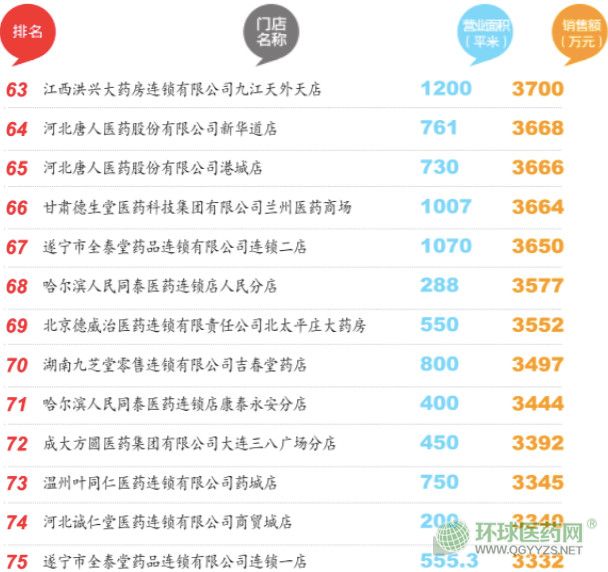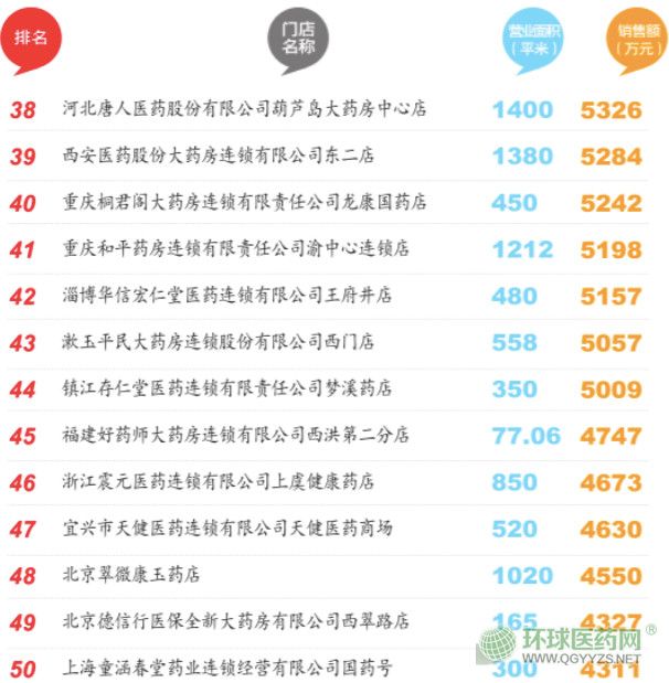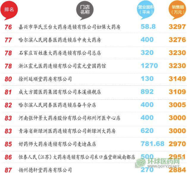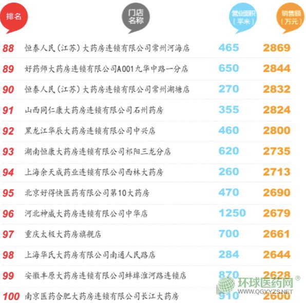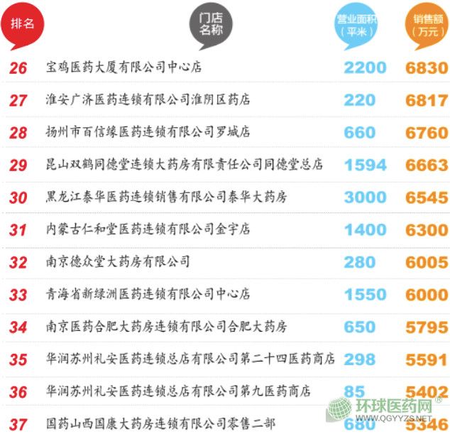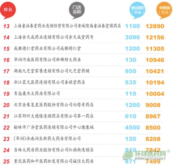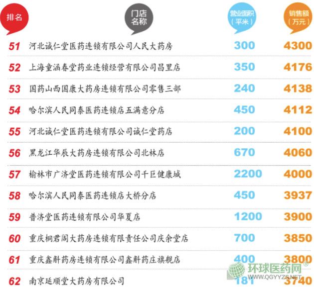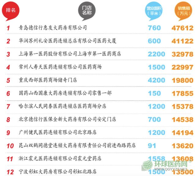 但值得一提的是,排名前四的藥店年銷售額較上一年均有明顯的提升。