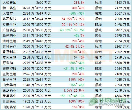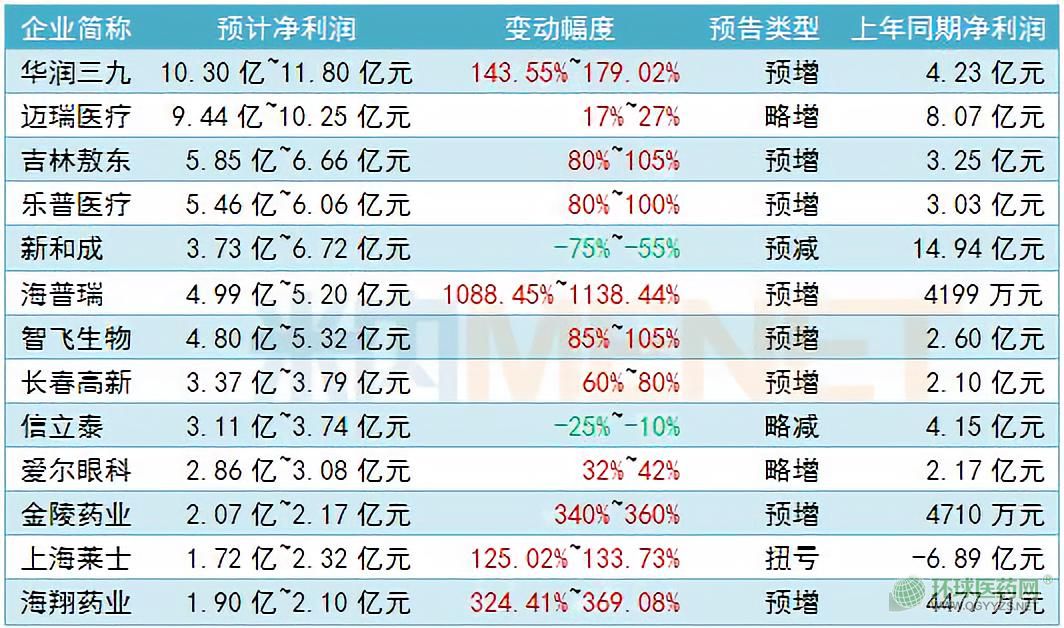 7家藥企凈利潤或超5億元