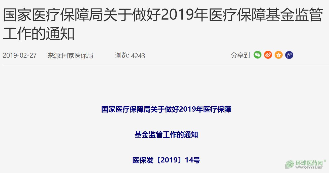 2月27日,國家醫(yī)療保障局發(fā)布《國家醫(yī)療保障局關(guān)于做好2019年醫(yī)療保障基金監(jiān)管工作的通知》(以下簡稱《通知》)。