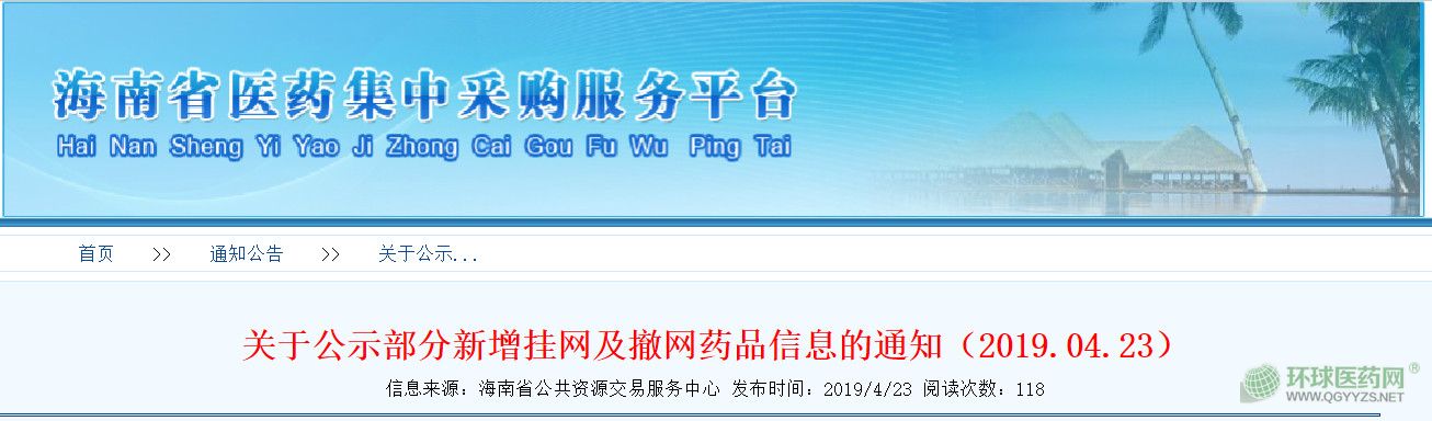 4月23日下午,海南省公共資源交易服務(wù)中心發(fā)布《關(guān)于公示部分新增掛網(wǎng)及撤網(wǎng)藥品信息的通知》(以下簡稱《通知》)。