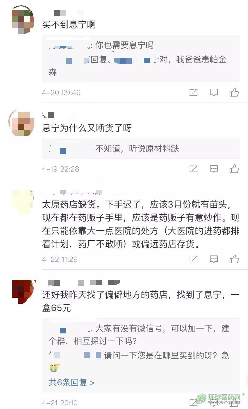 作為帕金森癥最主要的治療藥物之一,息寧自2016年全國(guó)大面積斷貨后,再次出現(xiàn)“藥荒”。自從今年年初開(kāi)始斷貨以來(lái),關(guān)于息寧的求藥帖在網(wǎng)絡(luò)上也快速發(fā)酵,微博、論壇等社交途徑均可見(jiàn)求藥的信息。