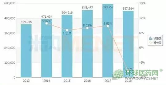 據(jù)米內(nèi)網(wǎng)數(shù)據(jù)顯示,近年,重點城市公立醫(yī)院終端(北京、廣州、南京、重慶、成都、西安、哈爾濱、沈陽、鄭州)抗腫瘤中成藥的銷售規(guī)模均超過50億規(guī)模,2018年銷售額53.74億元。