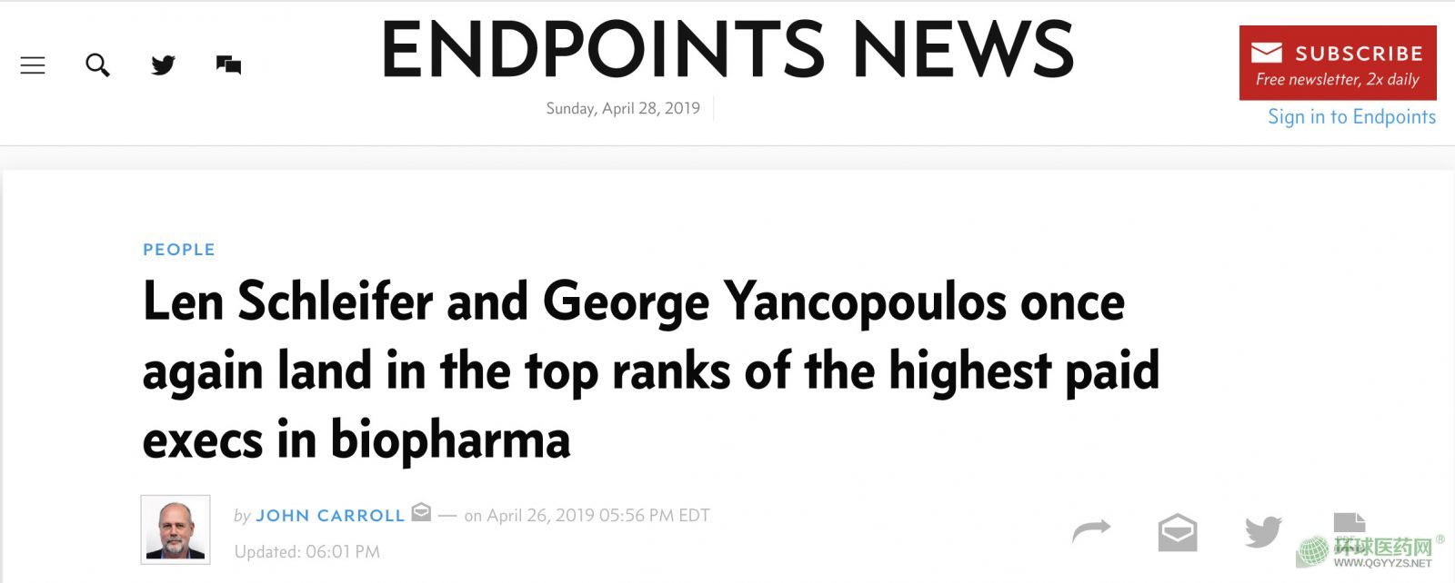 4月28日,美國知名醫(yī)藥媒體Endpoints News發(fā)布《2018年大型制藥公司CEO薪酬》榜單。