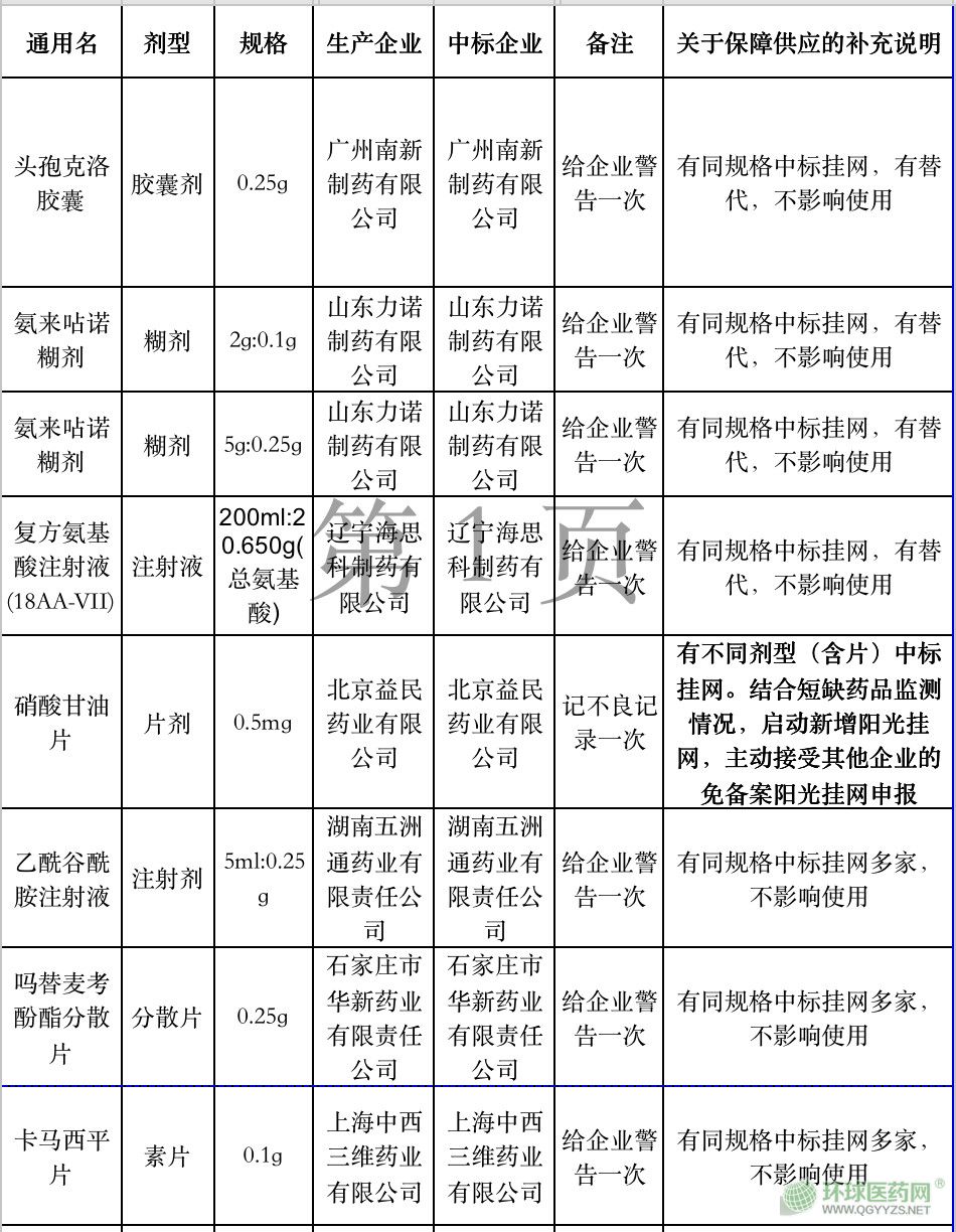 文件顯示,為不影響醫(yī)療機(jī)構(gòu)正常采購,自2019年5月1日起,取消附表所列藥品的中標(biāo)或掛網(wǎng)資格,并按照《甘肅省藥品集中采購誠信管理辦法》的相關(guān)規(guī)定給予相應(yīng)處罰。