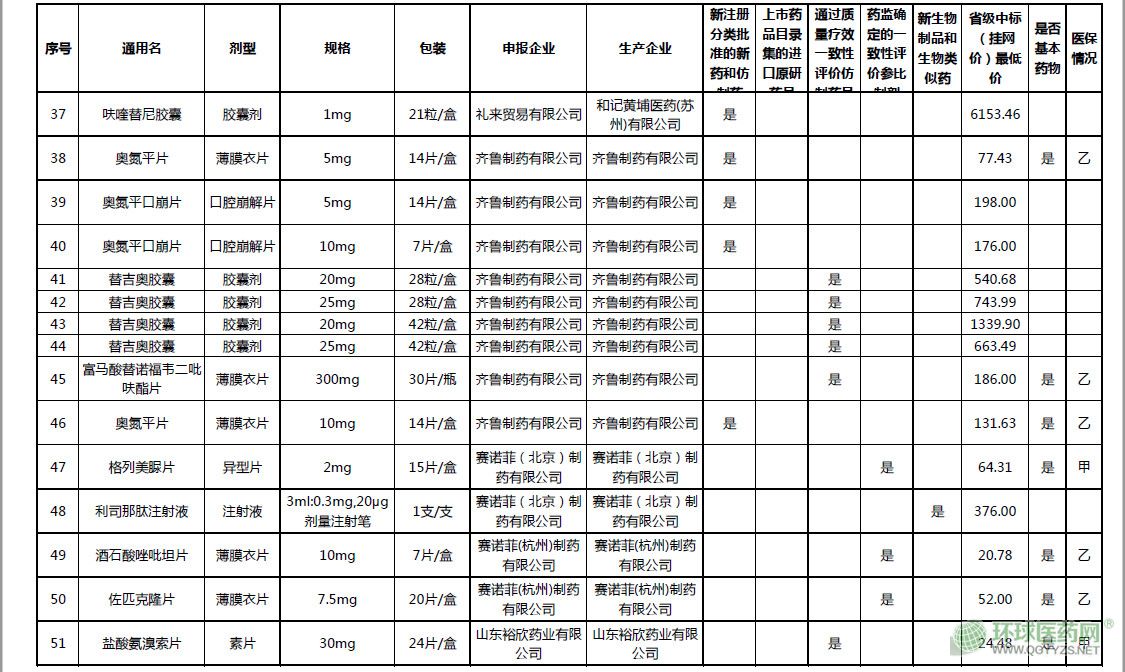 ▍一批過評(píng)藥品價(jià)格公布
