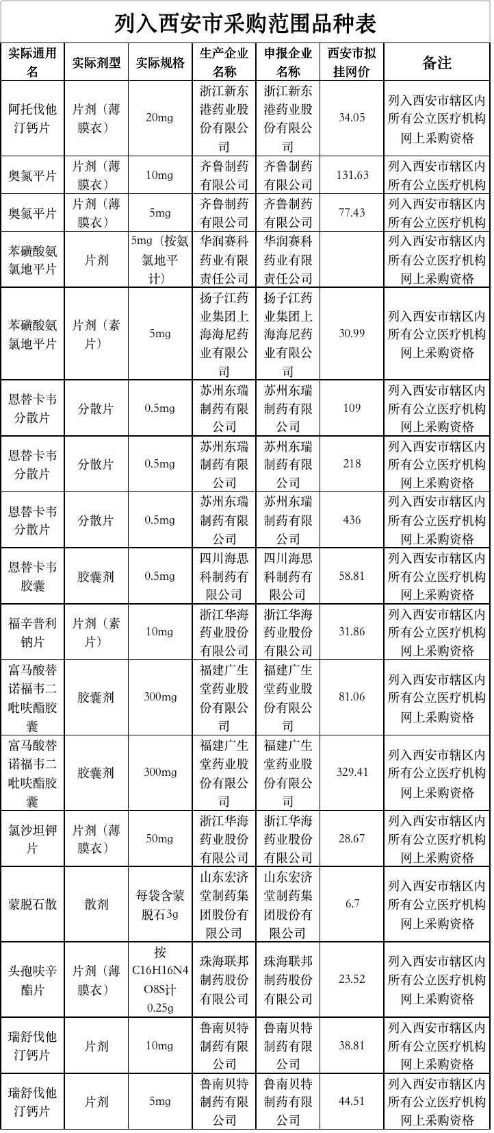 此外,通知明確,“4+7”試點相關品種確認上海紅線價或報價符合要求的列入西安市4+7網上采購范圍。此次發(fā)布的《“4+7”試點相關藥品處理結果表》顯示,17個藥品列入西安市采購范圍,獲得西安市轄區(qū)內所有公立醫(yī)療機構網上采購資格。