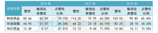 以輸液類為主營業(yè)務(wù)的3家藥企近年業(yè)績情況(單位:億元)