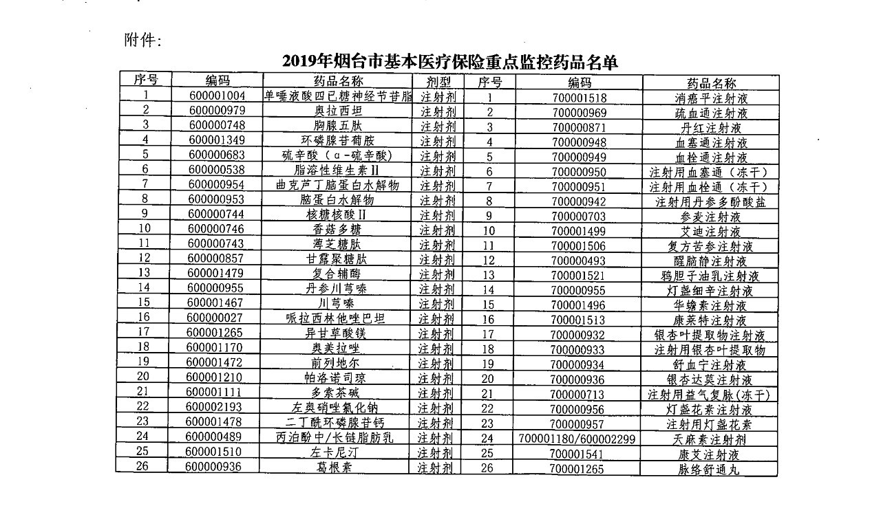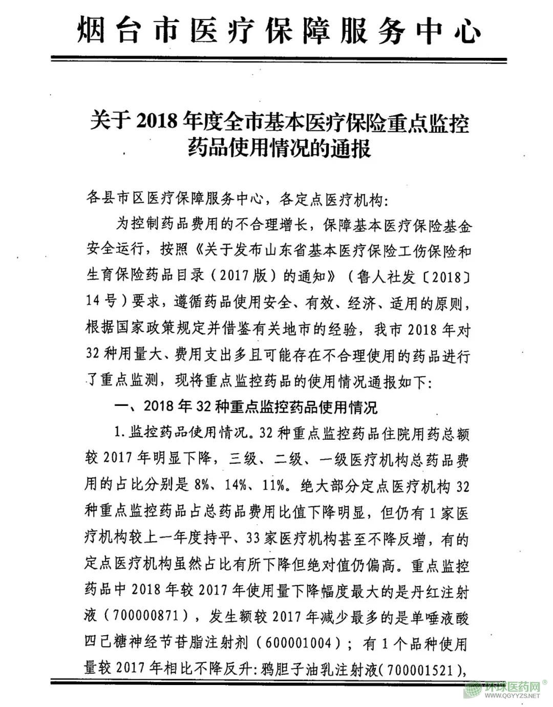 近日,山東煙臺市醫(yī)療保障服務(wù)中心發(fā)布《關(guān)于2018年度全市基本醫(yī)療保險重點監(jiān)控藥品使用情況的通報》,同時公布了2019年煙臺醫(yī)療保險重點監(jiān)控藥品名單,共52個藥品。
