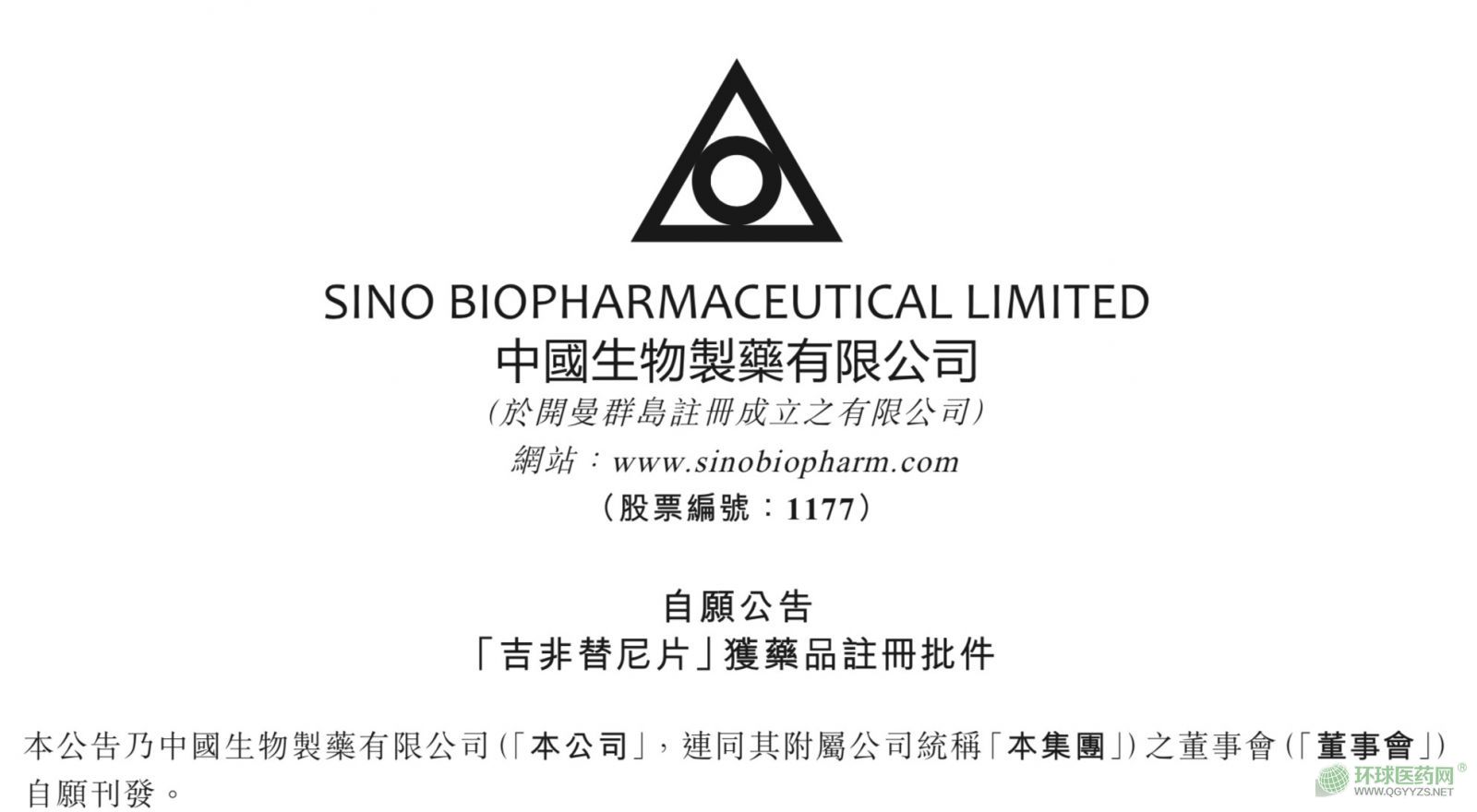 5月21日,中國生物制藥有限公司發(fā)布公告,其附屬公司正大天晴藥業(yè)集團股份有限公司開發(fā)的抗腫瘤藥吉非替尼片已獲得中華人民共和國國家藥品監(jiān)督管理局頒發(fā)的藥品注冊批件。