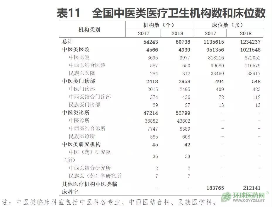 《公報》顯示,2018年末,全國中醫(yī)類醫(yī)療衛(wèi)生機(jī)構(gòu)總數(shù)達(dá)60738個,比上年增加6495個。其中:中醫(yī)類醫(yī)院4939個,中醫(yī)類門診部、診所55757個,中醫(yī)類研究機(jī)構(gòu)42個。與上年比較,中醫(yī)類醫(yī)院增加373個,中醫(yī)類門診部及診所增加6125個。