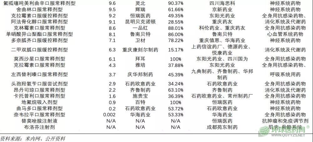 從首批帶量采購入圍品種名單來看,醫(yī)院終端銷售超過 15 億人民幣,甚至是超過 50 億人民幣的大品種入選概率較高,另外,臨床使用量大的心血管、抗腫瘤等藥品入選概率同樣較大。