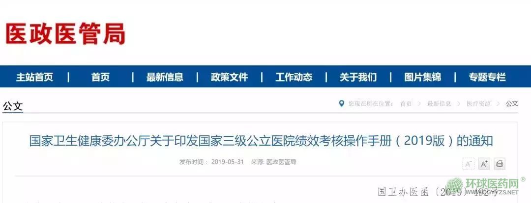 5月31日,國家衛(wèi)健委發(fā)布《國家衛(wèi)生健康委辦公廳關(guān)于印發(fā)國家三級公立醫(yī)院績效考核操作手冊(2019版)的通知》。