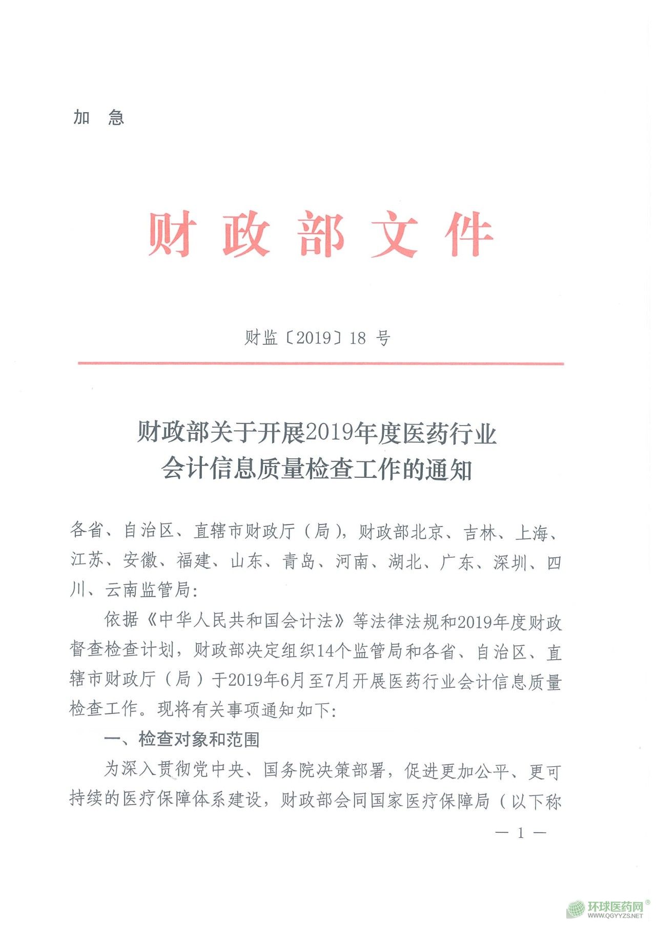 6月4日,財政部官網(wǎng)掛出通知,要組織部分監(jiān)管局和各省、自治區(qū)、直轄市財政廳(局)于2019年6月至7月開展醫(yī)藥行業(yè)會計信息質(zhì)量檢查工作。