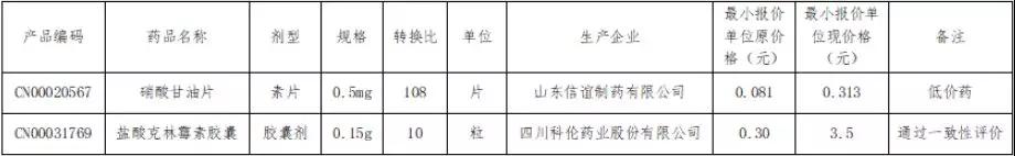 根據(jù)公告,有兩個藥品的價格被調(diào)整,分別是硝酸甘油片和鹽酸克林霉素膠囊,價格調(diào)整情況如下: