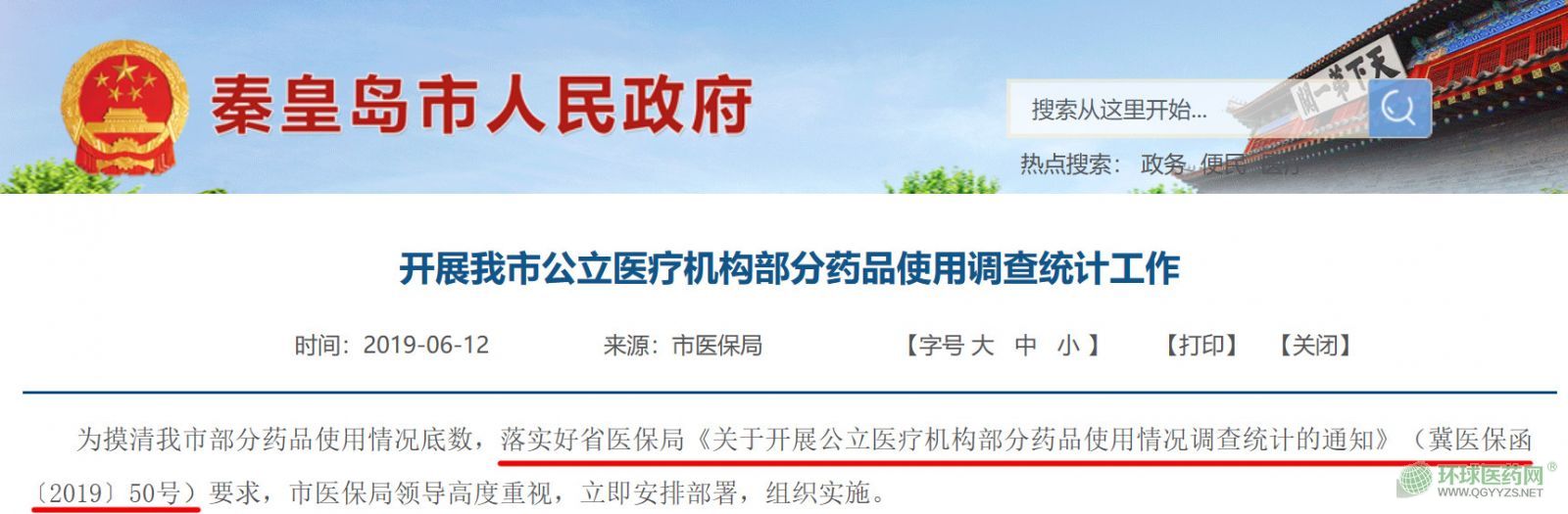 6月12日,秦皇島市政府網(wǎng)站轉(zhuǎn)發(fā)秦皇島市醫(yī)保局“開展我市公立醫(yī)療機(jī)構(gòu)部分藥品使用調(diào)查統(tǒng)計(jì)工作”的信息。