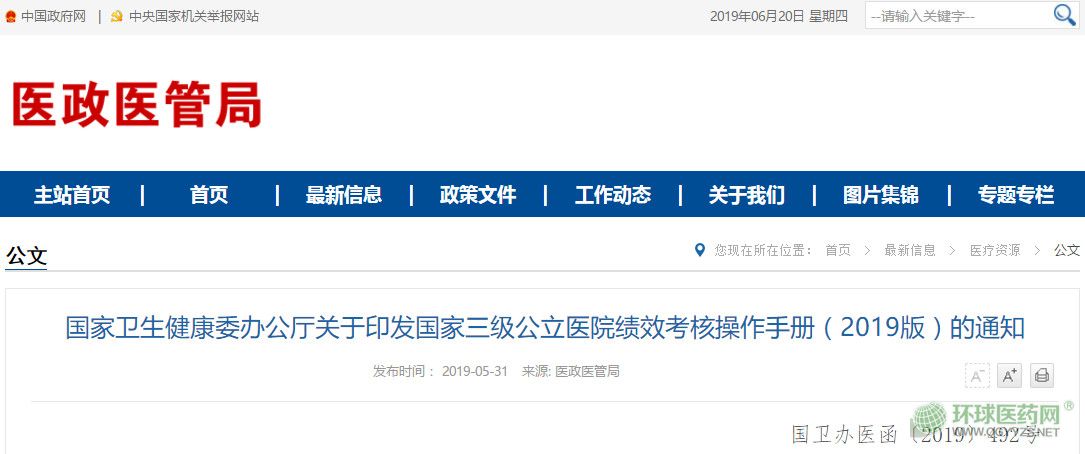 5月31日,國家衛(wèi)健委發(fā)布《國家衛(wèi)生健康委辦公廳關于印發(fā)國家三級公立醫(yī)院績效考核操作手冊(2019版)的通知》。