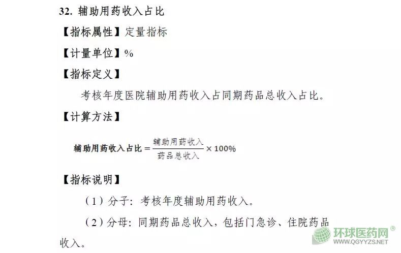 在國家三級公立醫(yī)院績效考核操作手冊中,輔助用藥收入占比是55個三級考核指標之一。輔助用藥收入占比主要是考核年度輔助用藥收入占同期藥品總收入的占比。